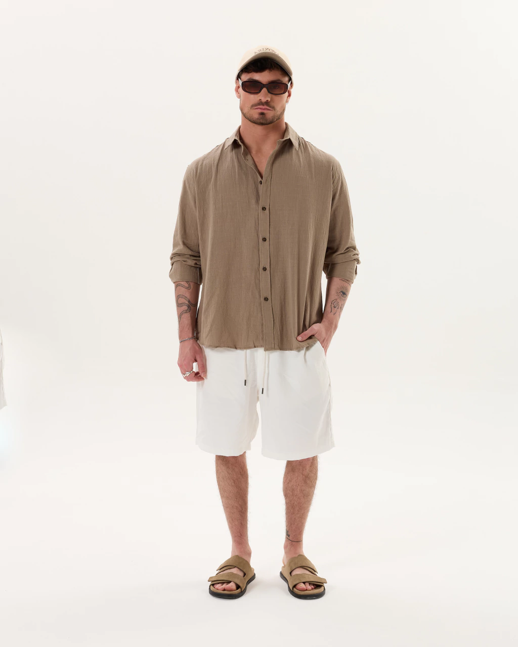 Confeccionada en Lino 100% algodón. Corte Clasico. Ajuste Holgado. Las mangas cuentan con cartera, permitiendo ajustarla a tu preferencia. Colores: Blanco, Negro, Beige,Vison. 5 Talles: S - M - L - XL - XXL