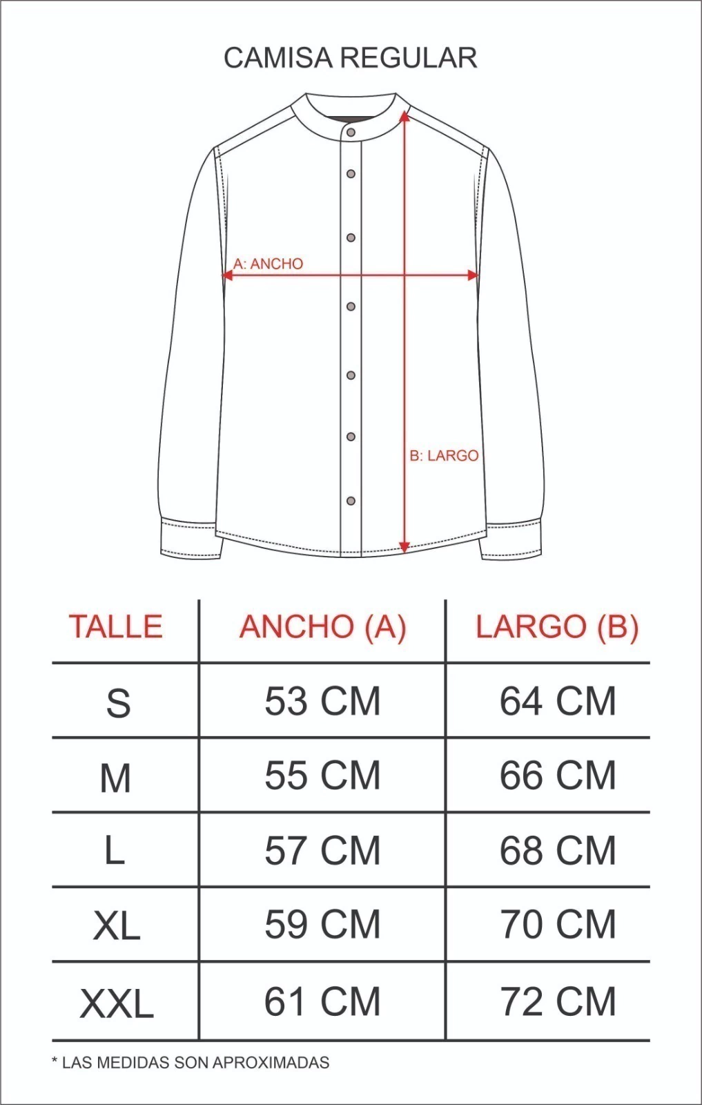 5 Talles: S - M - L - XL - XXL
