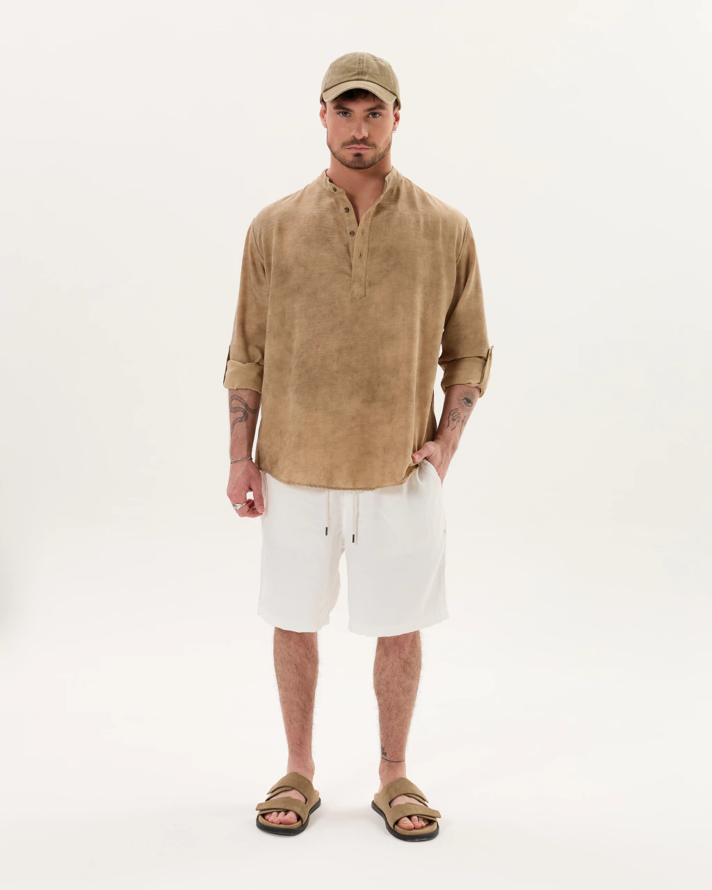 Confeccionada en Lino 100% algodón. Corte Relaxed & Cuello MAO. Lino estilo VINTAGE o nevado. Las mangas cuentan con Charretera para ajustar a preferencia.